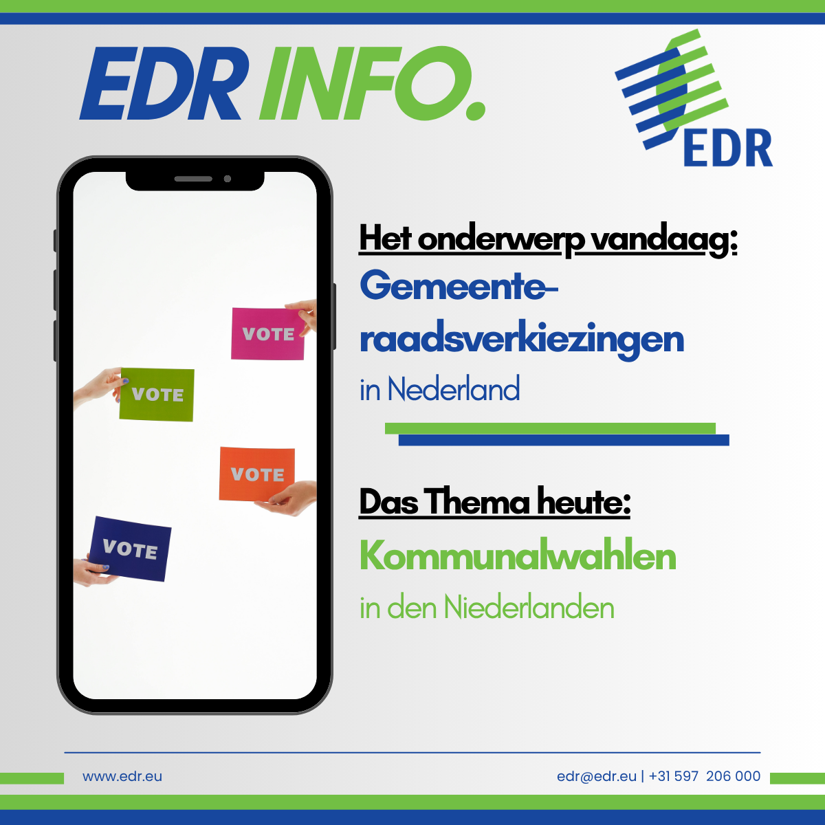 Die Ergebnisse dieser Wahlen zeigen sowohl landesweit als auch in der EDR-Region einige deutliche Trends. So bleibt die Popularität lokaler Parteien (vergleich mit den kommunalen Wählergemeinschaften in Deutschland) hoch. Sie behalten in vielen Gemeinden eine starke Position, obwohl im Gebiet der Ems Dollart Region ein leichter Rückgang der Gesamtzahl der Sitze für diese Parteien zu verzeichnen ist.