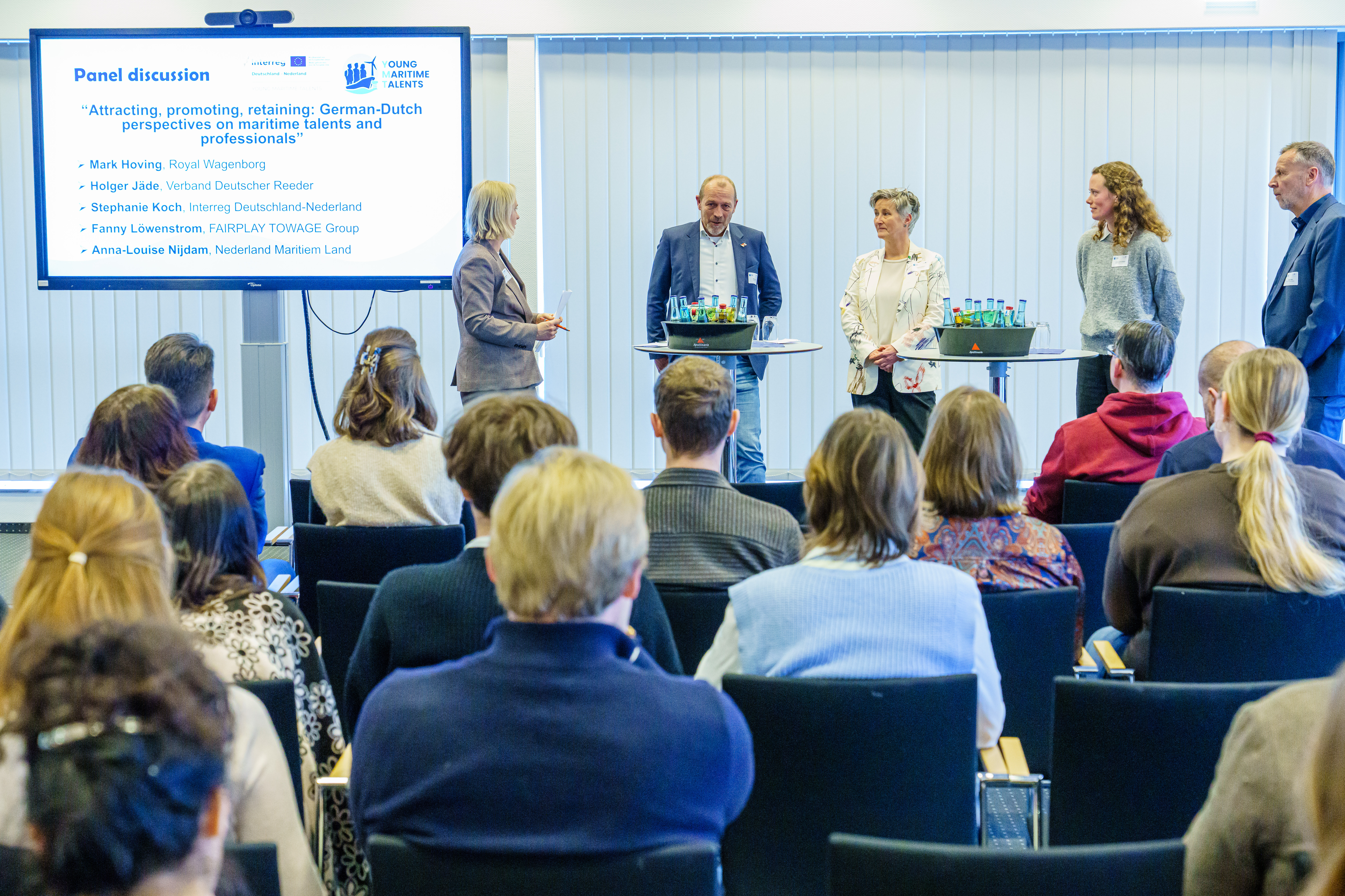 In einer deutsch-niederländischen Paneldiskussion wurden Unterschiede und Gemeinsamkeiten beider Länder in der Fachkräftesicherung beleuchtet. Dabei wurde deutlich, dass grenzübergreifende Zusammenarbeit große Chancen eröffnet. Anna-Louise Nijdam, verantwortlich für Human Capital bei Nederland Maritiem Land, erklärte: „Der Fachkräftemangel ist keine nationale Herausforderung. Young Maritime Talents zeigt, wie wichtig es ist, Wissen, Erfahrungen und gute Beispiele grenzüberschreitend zu teilen.“