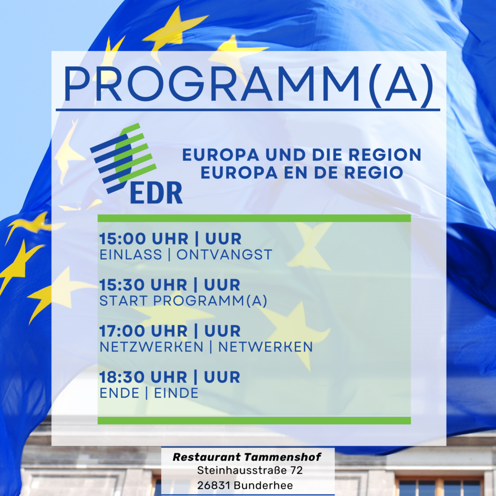 Freuen Sie sich auf anregende Impulse, eine spannende Podiumsdiskussion zum Thema „Europa und die Region“, die Verleihung des EDR-Grenzpreises und Gelegenheit zum persönlichen Austausch und Netzwerken in angenehmer Atmosphäre.